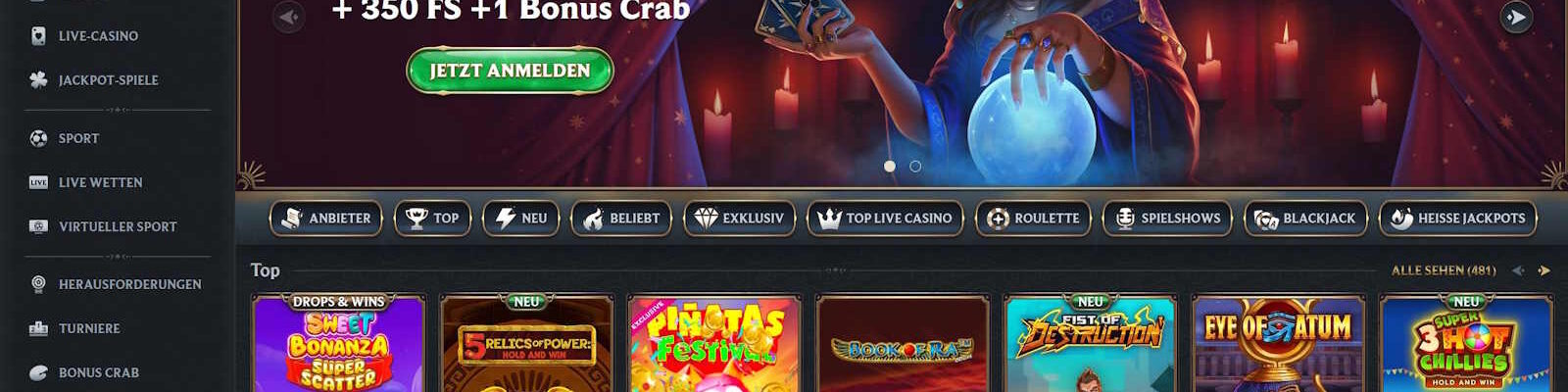 250% bis zu 3000€ + 350 FS + Bonus Crab