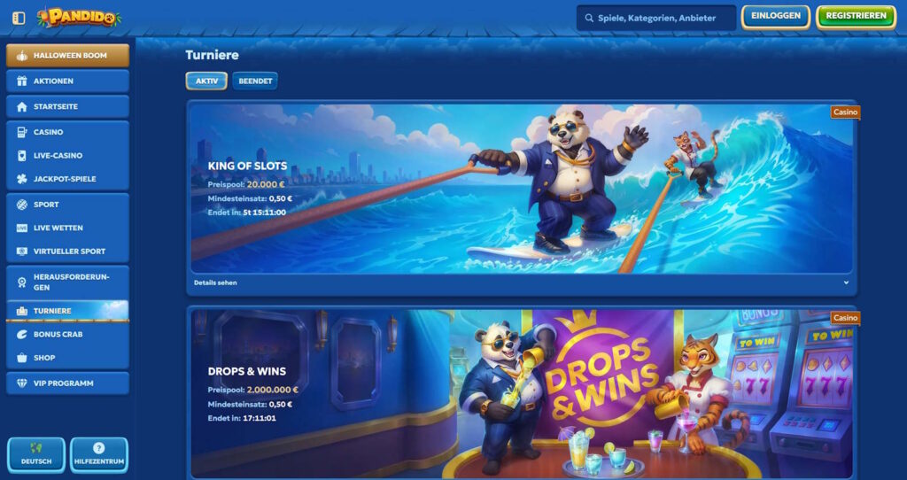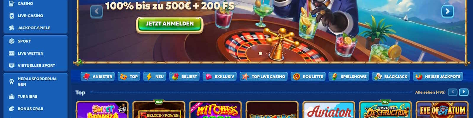 Bonusangebot 1. Dieses Angebot gilt nur für Neukunden, die sich auf unserer Website registriert und dort ihre erste Echtgeld-Einzahlung getätigt haben. 2. Der maximale Bonusbetrag beläuft sich auf 500 EUR. 3. Mit der ersten Einzahlung in Höhe von mindestens 10 EUR erhältst du 1 Gratis-Pick bei der Bonus Crab. Ein Spieler kann sie nutzen, indem er den Bereich Bonus Crab besucht. 4. Die Mindesteinzahlung, die nötig ist, um 100% Ersteinzahlungsbonus und 200 Freispiele zu erhalten, beträgt 20 EUR. 5. Nachdem die qualifizierende Einzahlung getätigt wurde, erhält der Spieler die Möglichkeit, den Einzahlungsbonus und die Freispiele nacheinander im Profilbereich zu aktivieren. 5.1. Bonus-Spins für die erste Einzahlung werden 10 Tage lang als Block von 20 pro Tag hinzugefügt - insgesamt 200 Bonus-Spins. Die ersten 20 Bonus-Spins können ab dem Moment der qualifizierenden Einzahlung für die nächsten 24 Stunden in Anspruch genommen werden. Die folgenden Aufladungen von 20 Bonus-Spins können an jedem der nächsten 9 Tage nach der genauen Stunde, zu der die erste Einzahlung getätigt wurde, innerhalb der nächsten 24 Stunden erneut in Anspruch genommen werden (zum Beispiel: wenn du deine erste Einzahlung heute um 10:30 Uhr tätigst, kann der erste Block von Bonus-Spins von heute 10:30 Uhr bis morgen 10:29 Uhr beansprucht werden. Der zweite Block kann morgen von 10:30 Uhr bis 10:29 Uhr am folgenden Tag beansprucht werden. 5.2. Jeder Block von 20 Bonus-Spins kann innerhalb von 24 Stunden nach Verfügbarkeit beansprucht werden, andernfalls verfallen die Spins. 6. Der Bonus wird sofort nach einer erfolgreichen Einzahlung gutgeschrieben. Bitte kontaktiere uns per Live-Chat oder E-Mail unter support@pandido.com, sollte der Bonus nicht gutgeschrieben werden. 7. Der Willkommensbonus kann nur eingefordert werden, bevor die qualifizierende Einzahlung für Einsätze verwendet wurde. 8. Eine Auszahlungsanforderung vor Inanspruchnahme des Bonus oder nach Aktivierung des Bonus führt zur Aufhebung der Bonusberechtigung. 9. Einzahlungen über Neteller oder Skrill berechtigen nicht zur Teilnahme an dieser Aktion. 10. Ein Spieler kann einen aktiven Bonus jederzeit im Profilbereich oder durch Kontaktaufnahme mit unserem Support-Team stornieren. Durch die Stornierung des Bonus wird der gesamte Betrag im Casino-Bonusguthaben ungültig. 11. Der maximale Einsatz, der während eines aktiven Casino-Bonus erlaubt ist, beträgt 5 EUR. 12. Die Umsatzbedingungen sind das 35-fache des ursprünglichen Einzahlungsbetrags und des erhaltenen Bonus. Die Umsatzbedingungen für Gewinne aus Bonus-Spins sind x40. 13. Verschiedene Spiele tragen unterschiedlich zur Bonusfreigabe bei. Die vollständigen Bedingungen für den Casino-Bonus findest du in Abschnitt 7 der Allgemeinen Geschäftsbedingungen. 14. Die Umsatzbedingungen für einen Bonus müssen innerhalb von 10 Tagen nach Aktivierung des Bonus erfüllt erden. Sollte der Umsatz in diesem Zeitraum nicht erfüllt werden, werden der Bonusbetrag und mögliche Gewinne ungültig. 15. Dieser Bonus kann nicht gleichzeitig mit anderen Boni (Aktionen) kombiniert werden. Wenn du einen anderen Bonus aktivierst oder Freispiele beanspruchst, während du einen aktiven Bonus hast, werden der aktuelle aktive Bonus und alle entsprechenden Gewinne automatisch aufgehoben. 16. Diese Werbeaktion ist nicht befristet. Unsere Website behält sich jedoch das Recht vor, die Aktion nach eigenem Ermessen und ohne vorherige Ankündigung zu ändern und zu beenden. 17. Diese Werbeaktion gilt in Übereinstimmung mit den Allgemeinen Geschäftsbedingungen.