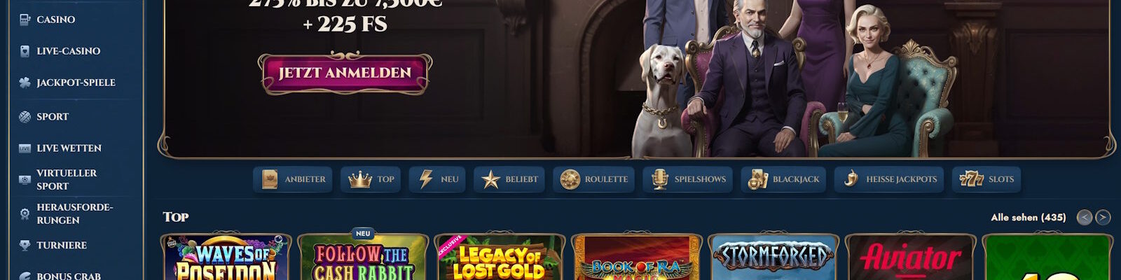 275% Bonus bis zu 7500€ + 225 FS + Bonus Crab Zahlreiche Live-Games
